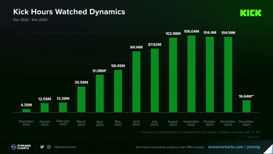 As a result of their expansive strategy and their hunger to bring over the best and biggest creators to their site, Kick has grown remarkably quickly. Here are a couple of stats that show just how big Kick has become over such a short period: